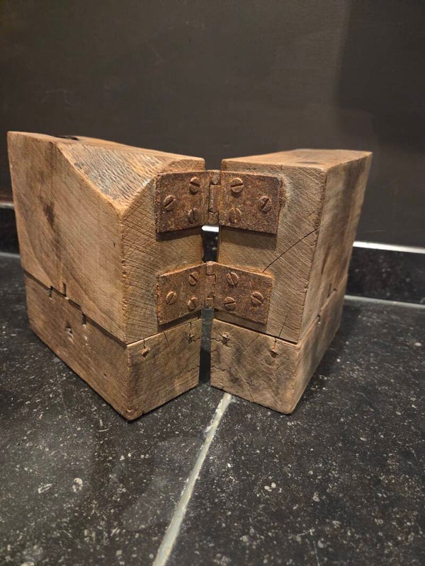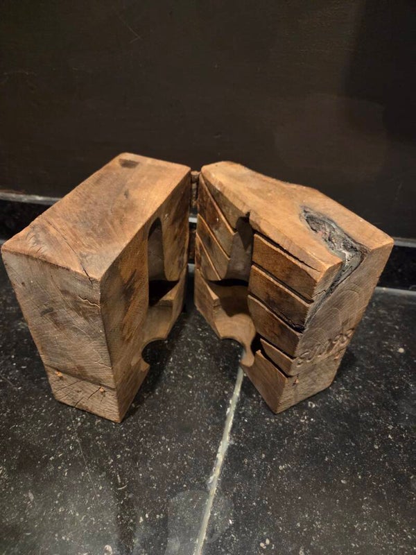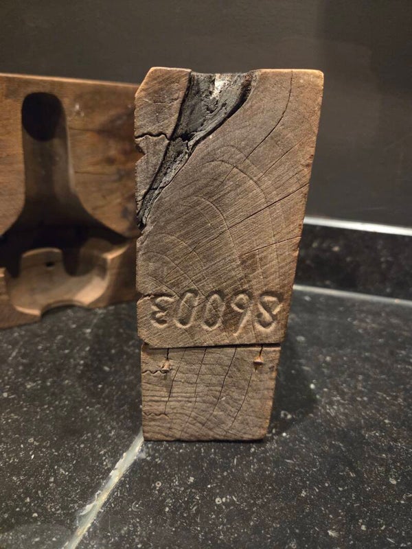 Gebruikte houten mal met nummer 86003 voor het maken van isolatoren
