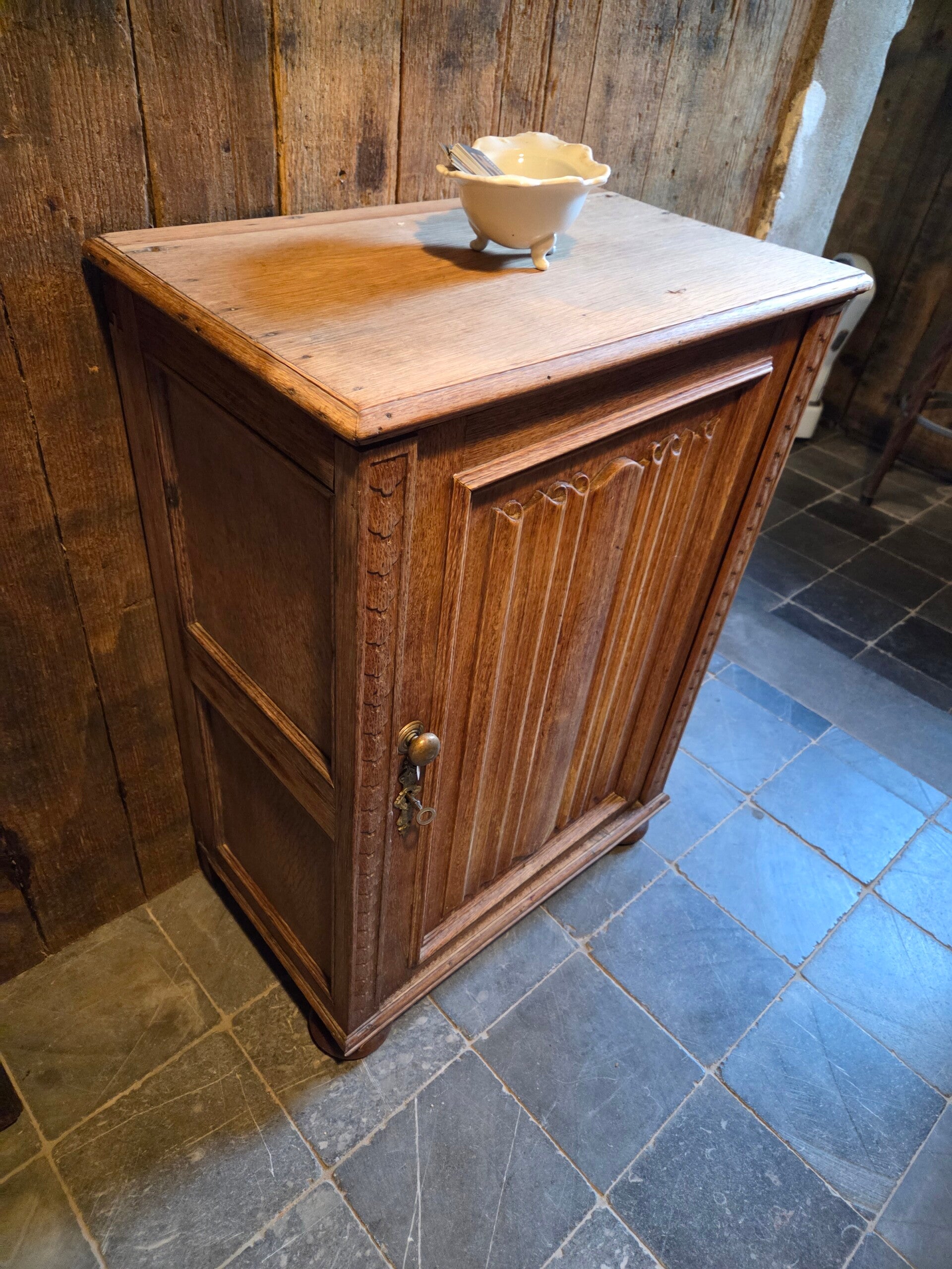 Prachtig houten kastje, decoratie op het deurtje is met de hand uitgestoken