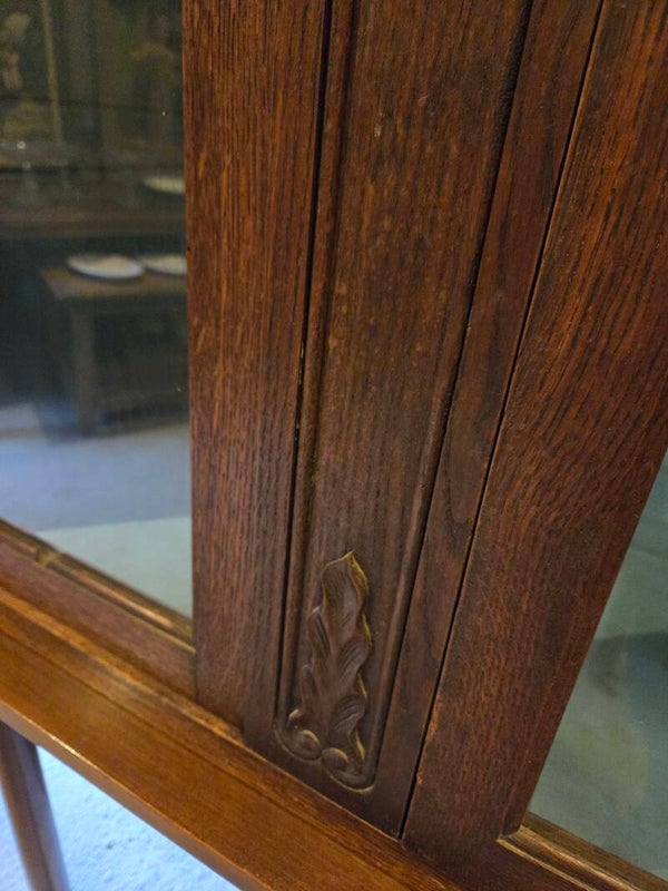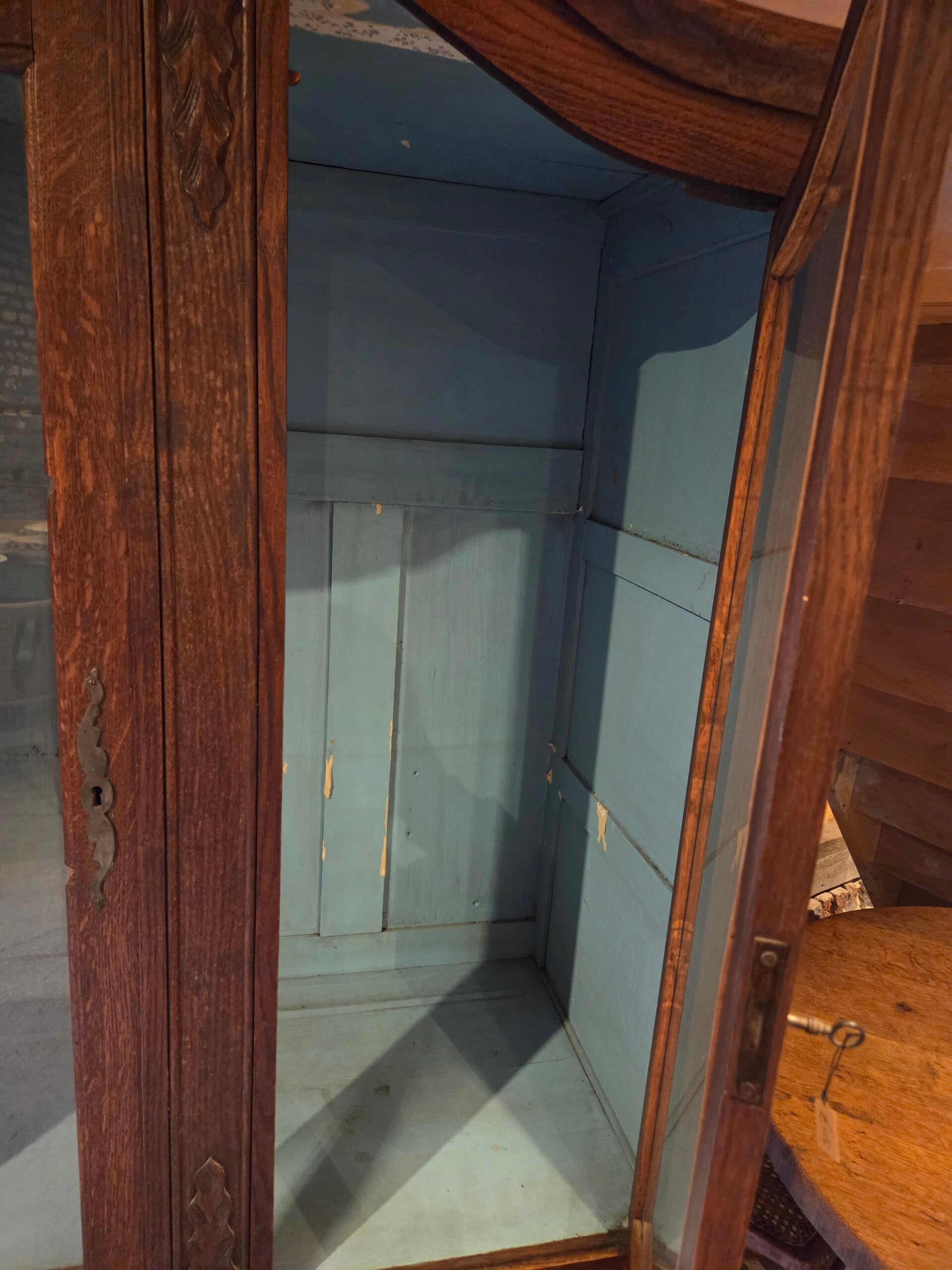 Vitrinekastje / wandkastje met blauwe binnenkant en mooie details uitgewerkt in het hout