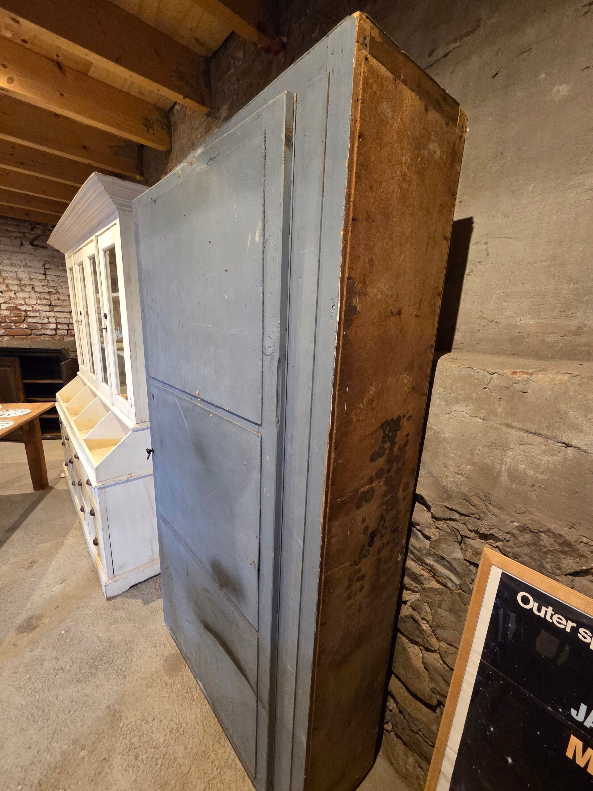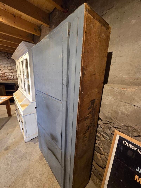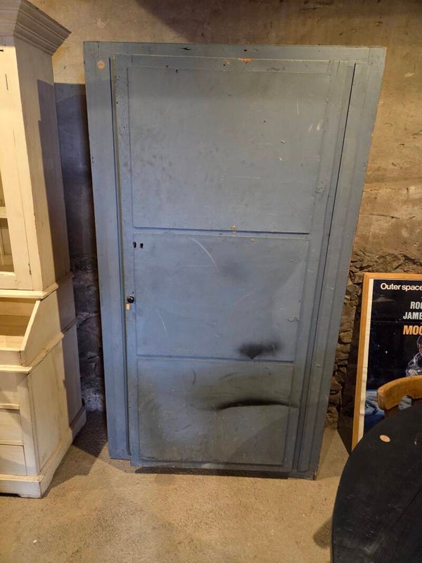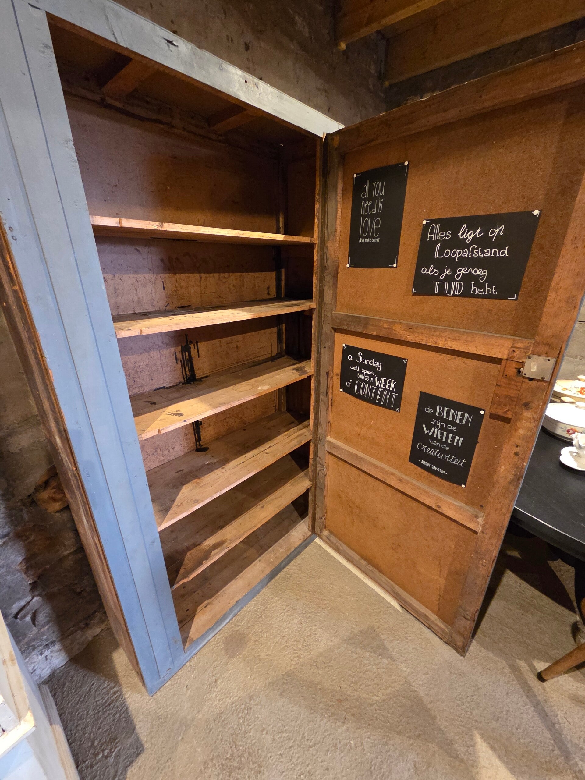 Stoere industriële eendeurskast van hout, met stevige legplanken