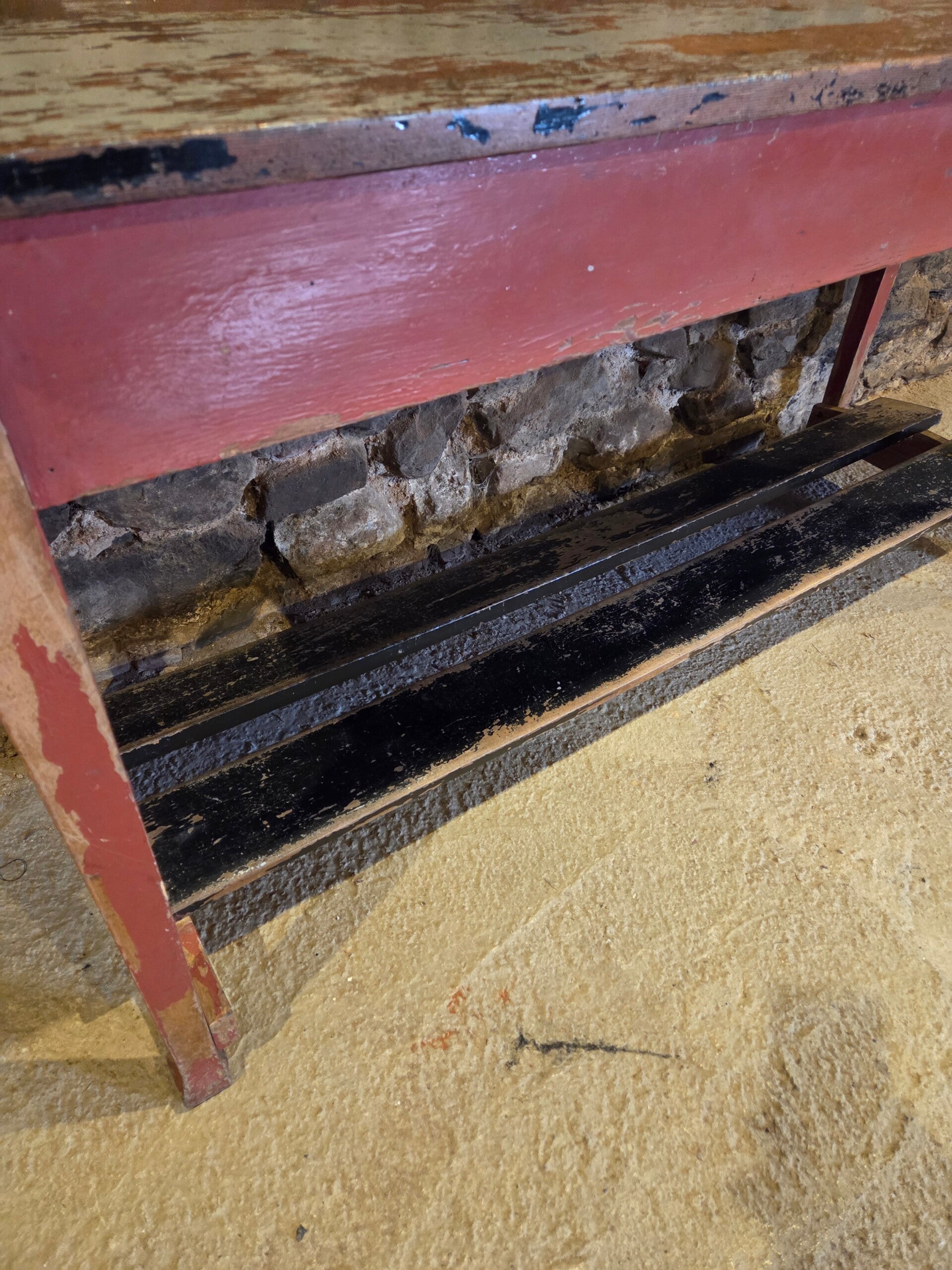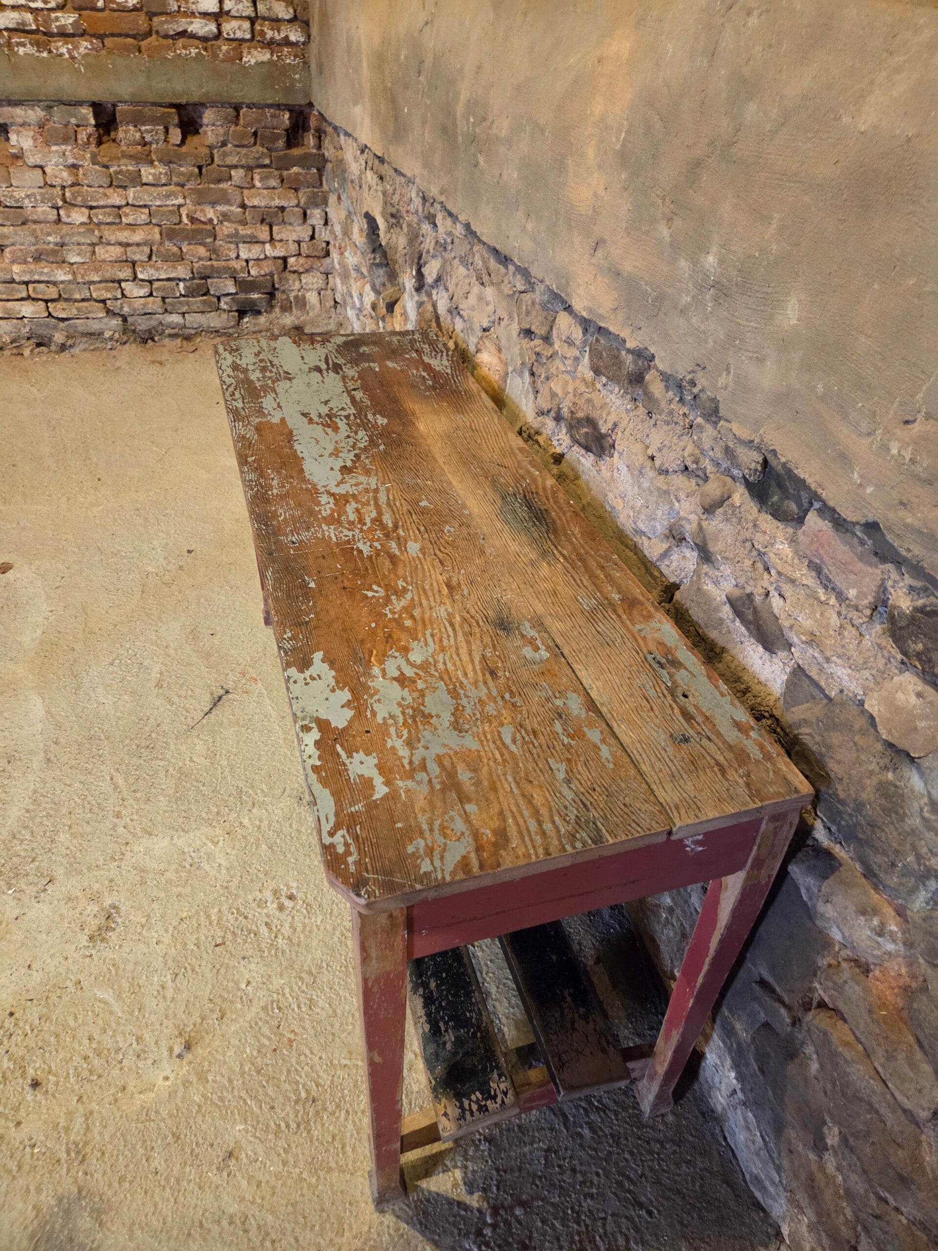 Brocante sidetable / werkbank met een zeer mooi patina, ook goed als thuiswerkbureau te gebruiken